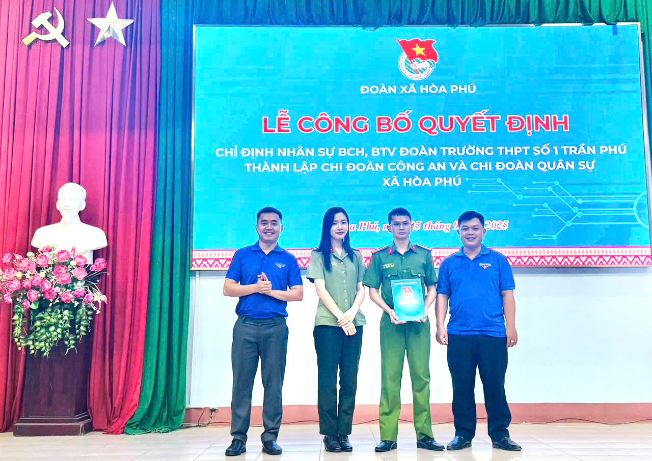 Đoàn xã Hòa Phú tổ chức Công bố Quyết định chỉ định nhân sự Ban Chấp hành, Ban Thường vụ Đoàn trường THPT số 1 Trần Phú, Thành lập Chi đoàn Công an xã và Chi đoàn Quân sự xã Hòa Phú